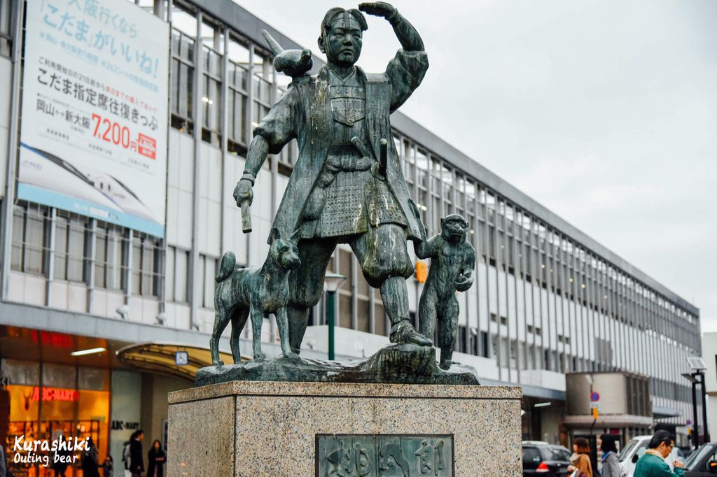 一出站就看到了桃太郎跟他跟班的雕像,拍照留紀念